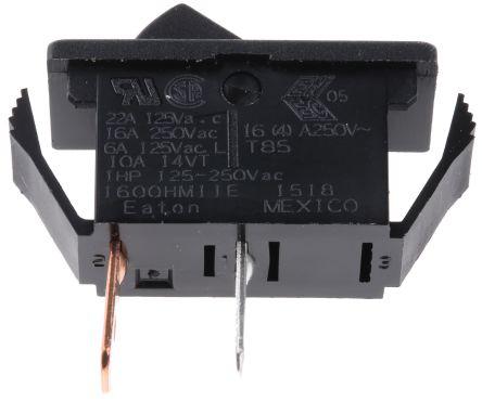 This is SPST On-Off Rocker Switch Panel manufactured by Eaton. The manufacturer part number is 1600HM11E. Its panel cut out is 27.3mm in height . The actuator has an adorable black colour. Its panel cut out is 12.27mm wide . The product is available in panel mount configuration. The product has 0 → +85°c of operating temperature range. The rated contact current is 22 a @ 125 v ac. The panel cut out size includes 27.3 x 12.27mm. The contact is equipped with single pole single throw (spst) configuration. Whereas, the minimum operating temperature of the product is 0°c. The product also provide mechanical stability with 50000operations. It provides latching switch operation. It has a maximum operating temperature of +85°c. The terminal is a quick connect, solder type. The product is made from sturdy silver plated copper materials.