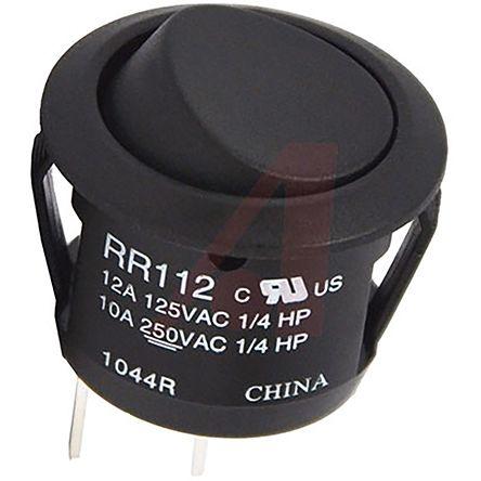 This is SPDT On-Off Rocker Switch Panel manufactured by Carling Technologies. The manufacturer part number is RR112-BB-NN. It is designed with an adorable round shape actuator . The actuator has an adorable black colour. Illumination Option no. The product is available in panel mount configuration. The product has 0 → +85°c of operating temperature range. The rated contact current is 10 a. The panel has a 20.2mm cut-out diameter. The contact is equipped with single pole double throw (spdt) configuration. The casing is constructed from highly stable nylon material. Whereas, the minimum operating temperature of the product is 0°c. In addition, its AC voltage rating is 125 v, 250 v . The product also provide mechanical stability with 100000operations. The panel cut out size includes 3 (dia.)mm. It has a maximum operating temperature of +85°c. The terminal is a quick connect type. It provides on-none-off switch operation. It is assigned with possible HTSUS value of 8536.50.9065. The product is rohs3 compliant. The product offers long-lasting services of 50,000 cycles. Moreover, it has quick connect - 0.187" (4.7mm) terminal style. The product has 0°c ~ 85°c operating temperature range. It is approved by cul, ul. The product exhibits 125 v of AC voltage rating. In addition, it is reach unaffected. It is shipped in bulk package . It is designed as a on-off switching function. The actuator marking of the product corelates with no marking. It has an integral spst circuit. It has a long 12 weeks standard lead time. Additionally, the product's output is 12a (ac). The product is available in panel mount, snap-in configuration. The product rr, is a highly preferred choice for users. It is made from black. The product carries concave (curved) actuator. Moreover, it corresponds to rr112, a base product number of the product. The product is designated with the ear99 code number.