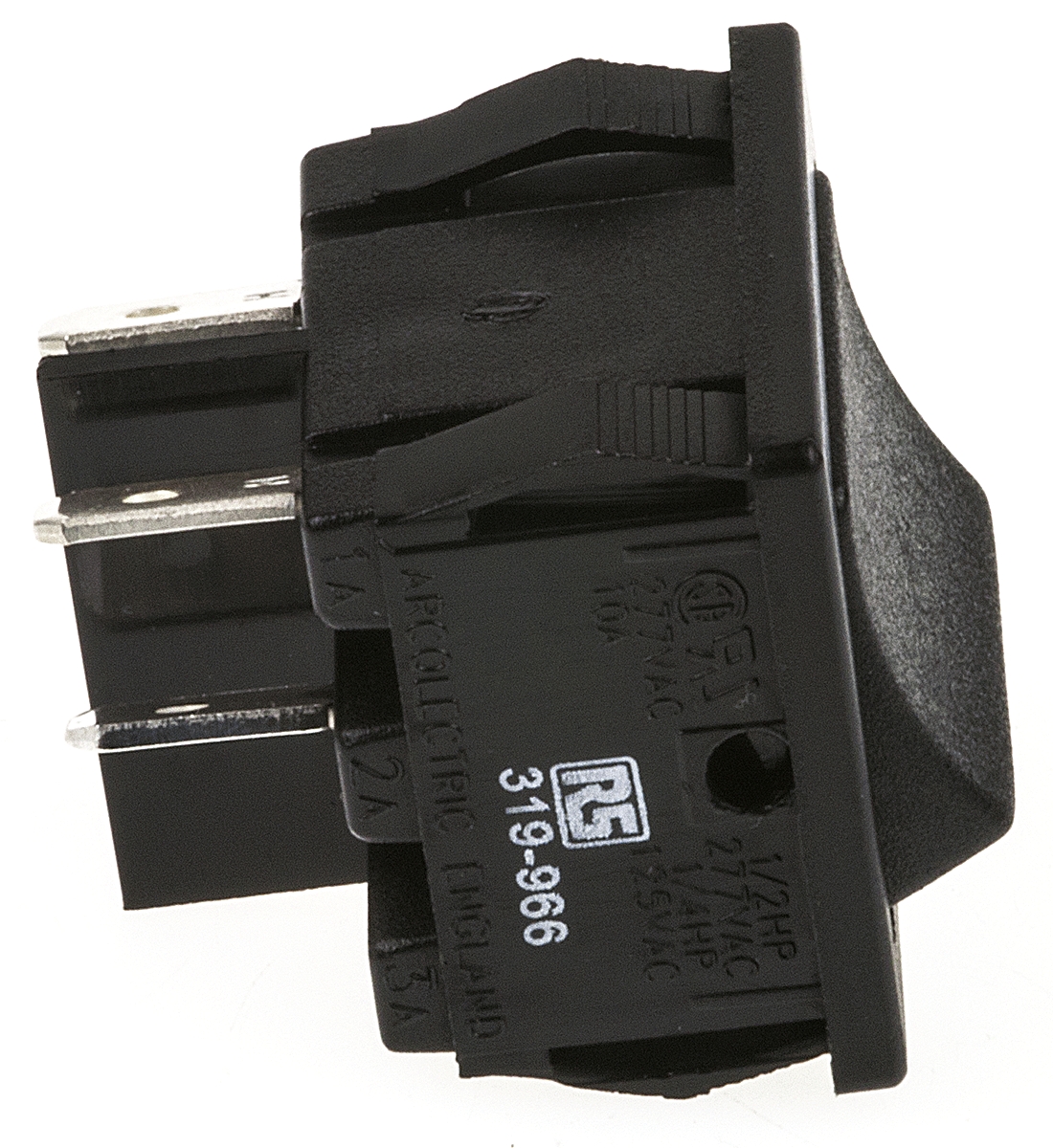 This is DPST On-Off Rocker Switch Panel manufactured by Arcolectric. The manufacturer part number is H8650VBAAK. It is designed with an adorable rectangular shape actuator . Its panel cut out is 19.4mm in height . The actuator has an adorable black colour. Illumination Option no. The product is available in panel mount configuration. The rated contact current is 10 a. The contact is equipped with dpst configuration. Its panel cut out is 22mm wide . In addition, its AC voltage rating is 250v . The panel cut out size includes 19.4 x 22mm. The terminal is a quick connect type. It provides on-off switch operation.