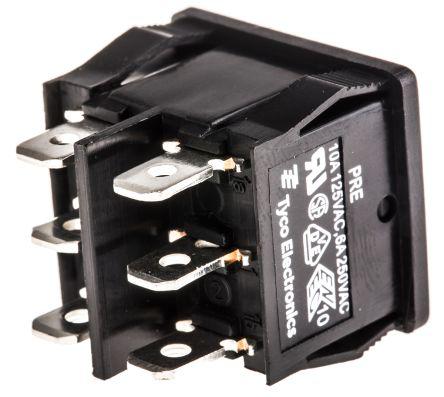 This is DPDT On-Off-On Rocker Switch Panel manufactured by TE Connectivity. The manufacturer part number is 1-1634200-8. It features a 50mω contact resistance. Its panel cut out is 22.2mm in height . The actuator has an adorable black colour. Its panel cut out is 19.4mm wide . The product is available in panel mount configuration. The rated contact current is 10 a @ 125 v ac. The panel cut out size includes 22.2 x 19.4mm. The contact is equipped with double pole double throw (dpdt) configuration. The casing is constructed from highly stable nylon 66 material. The product also provide mechanical stability with 100000operations. It provides on-off-on switch operation. The terminal is a quick connect type. The product is made from sturdy silver tin oxide materials.