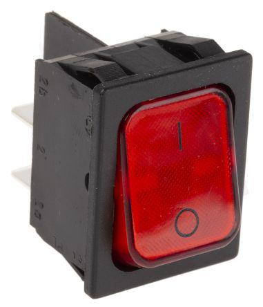This is Illuminated DPST On-Off Rocker Switch Panel manufactured by Marquardt. The manufacturer part number is 1835.3112. It is designed with an adorable rectangular shape actuator . Its panel cut out is 30mm in height . The actuator has an adorable red colour. Illumination Option yes. The product is available in panel mount configuration. It includes i, o legend text . The rated contact current is 16 a. It is IP rated with ip40. The contact is equipped with double pole single throw (dpst) configuration. Its panel cut out is 22mm wide . In addition, its AC voltage rating is 250v . The panel cut out size includes 30.2 x 22mm. The terminal is a quick connect type. It provides on-none-off switch operation.