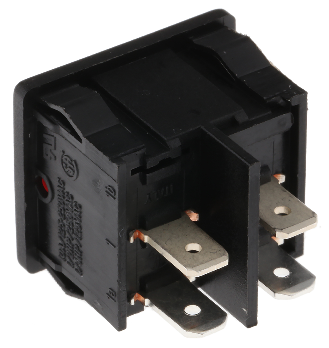 This is Illuminated DPST On-Off Rocker Switch Panel manufactured by Molveno. The manufacturer part number is A41831G00000. It is designed with an adorable rectangular shape actuator . Its panel cut out is 19mm in height . The actuator has an adorable red colour. Illumination Option yes. The product is available in panel mount configuration. The product has maximum of +125°c of operating temperature range. The rated contact current is 10 a. The contact is equipped with dpst configuration. Its panel cut out is 22mm wide . In addition, its AC voltage rating is 250v . The product also provide mechanical stability with 50000operations. The panel cut out size includes 19 x 22mm. It has a maximum operating temperature of +125°c. The terminal is a quick connect type. It provides on-off switch operation.