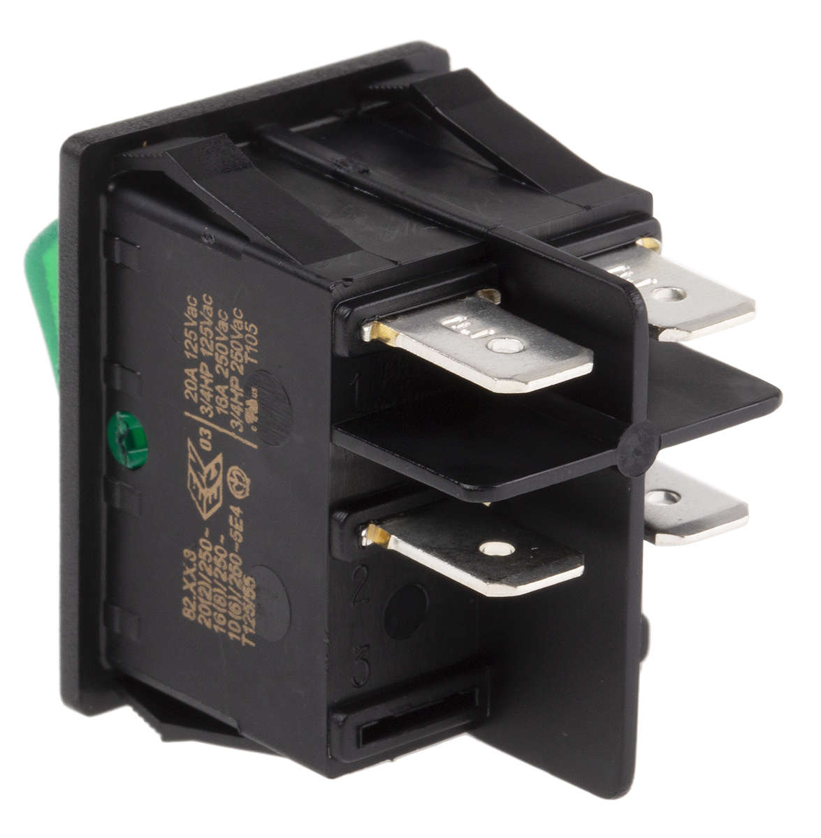 This is Illuminated DPST On-Off Rocker Switch Panel manufactured by Molveno. The manufacturer part number is SX8211881E110000. It is designed with an adorable rectangular shape actuator . Its panel cut out is 30mm in height . The actuator has an adorable green colour. Illumination Option yes. The product is available in panel mount configuration. It includes on (symbol); off (symbol) legend text . The rated contact current is 20 a. The product has maximum of +125°c of operating temperature range. It has a black colour legend text . The contact is equipped with dpst configuration. The casing is constructed from highly stable plastic material. Its panel cut out is 22mm wide . In addition, its AC voltage rating is 250v . The product also provide mechanical stability with 50000operations. The panel cut out size includes 30 x 22mm. It has a maximum operating temperature of +125°c. The terminal is a quick connect type. It provides on-off switch operation.