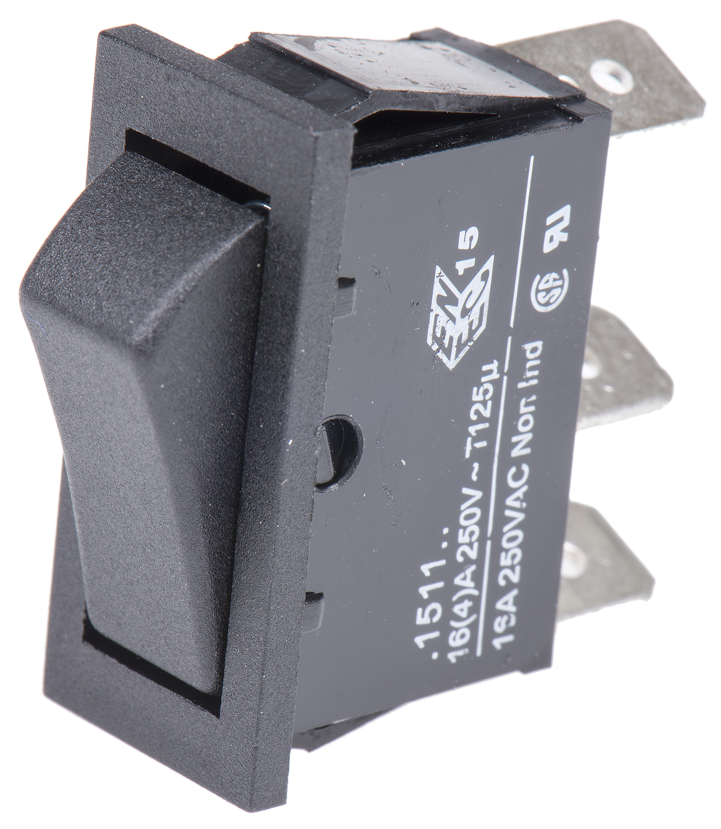 This is SPDT On-(On) Rocker Switch Panel manufactured by Arcolectric. The manufacturer part number is C1511AAAAA. It is designed with an adorable rectangular shape actuator . Its panel cut out is 27.2mm in height . The actuator has an adorable black colour. Illumination Option no. The product is available in panel mount configuration. The rated contact current is 16 a. The contact is equipped with spdt configuration. Its panel cut out is 12.2mm wide . In addition, its AC voltage rating is 125 v, 250 v . The panel cut out size includes 27.2 x 12.2mm. The terminal is a quick connect type. It provides (on)-on switch operation.