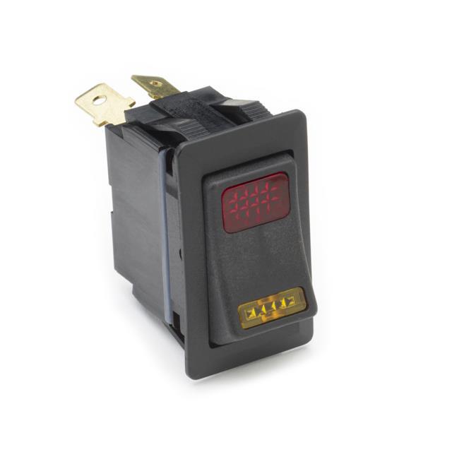 This is manufactured by Littelfuse Inc.. The manufacturer part number is 58328-35. It is assigned with possible HTSUS value of 8536.50.9065. The product is rohs3 compliant. Moreover, it has quick connect - 0.250" (6.3mm) terminal style. 12 v of DC voltage rating. It also has a rectangular - 36.83mm x 21.08mm dimensional features. In addition, it is reach unaffected. It is supplied with incandescent, amber/red illumination. It is shipped in bulk package . It is designed as a on-off-on switching function. Its typical moisture sensitivity level is 1 (unlimited). The actuator marking of the product corelates with no marking. It has an integral spdt circuit. It has a long 16 weeks standard lead time. Additionally, the product's output is 25a (dc). It is IP rated with ip66 - dust tight, water resistant. The product is available in panel mount, snap-in configuration. The product 58328, is a highly preferred choice for users. It is made from black. The product carries concave (curved) - illuminated actuator. The nominal illumination voltage of the product is 12 vdc. Moreover, it corresponds to 58328, a base product number of the product. The product is designated with the ear99 code number.