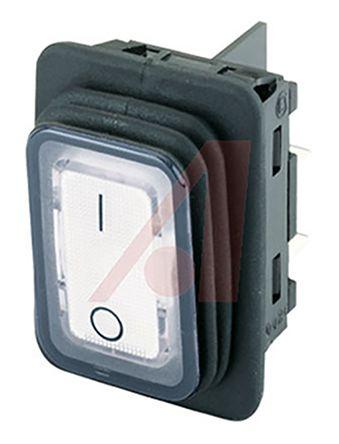 This is Illuminated DPST On-(Off) Rocker Switch Panel manufactured by Marquardt. The manufacturer part number is 1935.3138. It has approximately 12v DC voltage rating . The actuator has an adorable white colour. It features a <100mω contact resistance. The product also provide mechanical stability with 50000operations. Its panel cut out is 22mm in height . The panel cut out size includes 30.2 x 22mm. Illumination Option yes. It includes on (symbol); off (symbol) legend text . The rated contact current is 10 a. The product has -30 → +105 (terminal side) °c, -30 → +55 (actuating side) °c of operating temperature range. The casing is constructed from highly stable polyamide material. It provides on-none-off switch operation. It has a maximum operating temperature of +105 (terminal side) °c, +55 (actuating side) °c. The terminal is a quick connect type. It is IP rated with ip65. The contact is equipped with double pole single throw (dpst) configuration. It has a black colour legend text . Its panel cut out is 30mm wide . It is designed with an adorable rectangular shape actuator . The product is available in panel mount configuration. Whereas, the minimum operating temperature of the product is -30 (actuating side) °c, -30 (terminal side) °c. The product is made from sturdy silver materials.