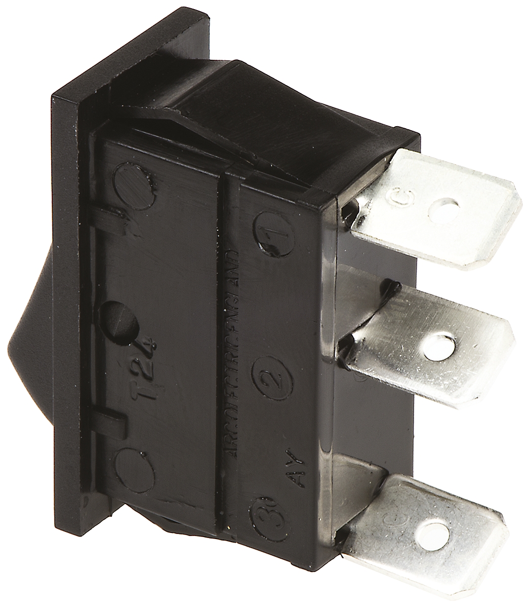 This is SPDT On-Off-On Rocker Switch Panel manufactured by Arcolectric. The manufacturer part number is C1520AAAAA. It is designed with an adorable rectangular shape actuator . Its panel cut out is 27.2mm in height . The actuator has an adorable black colour. Illumination Option no. The product is available in panel mount configuration. The rated contact current is 16 a. The contact is equipped with spdt configuration. Its panel cut out is 12.2mm wide . In addition, its AC voltage rating is 125 v, 250 v . The panel cut out size includes 27.2 x 12.2mm. The terminal is a quick connect type. It provides on-off-on switch operation.