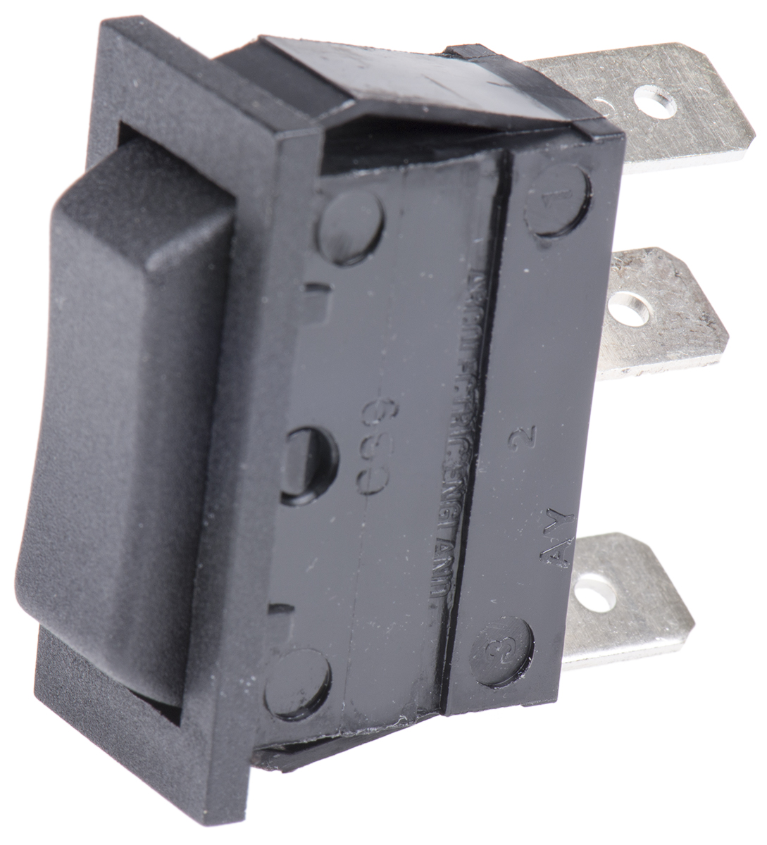 This is Rocker Switch Single Pole Double Throw (SPDT) (On)-Off-(On) Panel manufactured by Arcolectric. The manufacturer part number is C1522AAAAA. It is designed with an adorable rectangular shape actuator . Its panel cut out is 27.2mm in height . The actuator has an adorable black colour. Illumination Option no. The product is available in panel mount configuration. The rated contact current is 16 a. The contact is equipped with spdt configuration. Its panel cut out is 12.2mm wide . In addition, its AC voltage rating is 125 v, 250 v . The panel cut out size includes 27.2 x 12.2mm. The terminal is a quick connect type. It provides (on)-off-(on) switch operation.