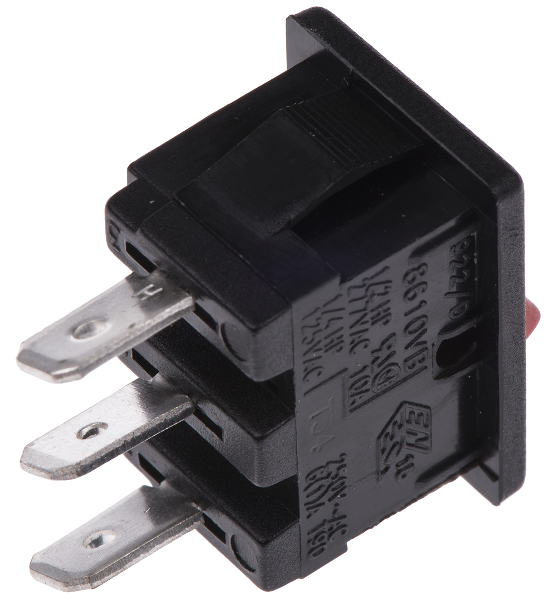 This is SPDT On-On Rocker Switch Panel manufactured by Arcolectric. The manufacturer part number is H8610VBAAE. It is designed with an adorable rectangular shape actuator . Its panel cut out is 19.4mm in height . The actuator has an adorable amber colour. Illumination Option no. The product is available in panel mount configuration. The rated contact current is 6 a. The contact is equipped with spdt configuration. Its panel cut out is 12.9mm wide . In addition, its AC voltage rating is 250v . The panel cut out size includes 19.4 x 12.9mm. The terminal is a quick connect type. It provides on-on switch operation.
