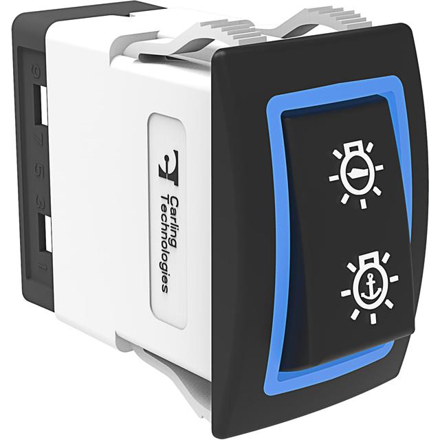 This is manufactured by Carling Technologies. The manufacturer part number is HR28D1A11BW1-11-YKUS1. It is assigned with possible HTSUS value of 8536.50.9065. The product is rohs3 compliant. The product offers long-lasting services of 100,000 cycles. Moreover, it has quick connect - 0.110" (2.8mm) terminal style. 12 v of DC voltage rating. The product has -40°c ~ 85°c operating temperature range. It also has a rectangular - 36.83mm x 21.08mm dimensional features. The product also provide mechanical stability with 200,000 cycles. In addition, it is reach unaffected. It is supplied with led, blue/white illumination. It is designed as a mom-off-mom switching function. Its typical moisture sensitivity level is 1 (unlimited). The actuator marking of the product corelates with running lights - anchor light, vertical. It has an integral dpdt circuit. Additionally, the product's output is 20a (dc). It is IP rated with ip68 - dust tight, waterproof. The product is available in panel mount, snap-in configuration. The product hr, is a highly preferred choice for users. In addition, box is the available packaging type of the product. It is made from black. The product carries flat - illuminated actuator. The nominal illumination voltage of the product is 12 vdc. Moreover, it corresponds to hr28d1a11bw1, a base product number of the product. The product is designated with the ear99 code number.