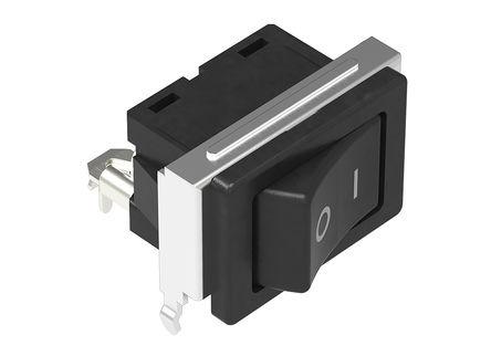 This is Alps Electric Single Pole Single Throw (SPST) Latching Rocker Switch manufactured by Alps Alpine. The manufacturer part number is SDDJE12400. It is designed with an adorable rectangular shape actuator . It features a 100mω contact resistance. Its panel cut out is 19.9mm in height . The actuator has an adorable black colour. Illumination Option no. The product is available in panel mount configuration. It includes i, o legend text . The rated contact current is 10 a. Whereas, the minimum operating temperature of the product is -10°c. It is IP rated with ip00. The contact is equipped with spst configuration. The product has -10 → +55°c of operating temperature range. It has a white colour legend text . Its panel cut out is 12.9mm wide . In addition, its AC voltage rating is 250v . The product also provide mechanical stability with 10000cycles. The panel cut out size includes 19.9 x 12.9mm. It has a maximum operating temperature of +55°c. The terminal is a right angle pc pin type. It provides latching switch operation.