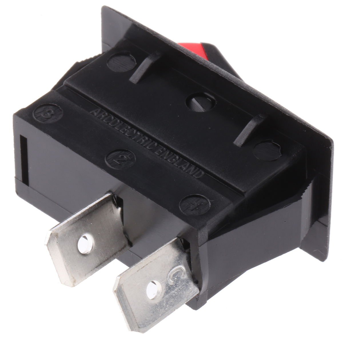 This is Single Pole Single Throw (SPST) On-Off Rocker Switch Panel Mount manufactured by Arcolectric (Bulgin) Ltd. The manufacturer part number is C1300XRAAC. It is designed with an adorable rectangular shape actuator . Its panel cut out is 28.5mm in height . Illumination Option no. The product is available in panel mount configuration. The rated contact current is 16 a. The contact is equipped with spst configuration. Its panel cut out is 14mm wide . In addition, its AC voltage rating is 125 v, 250v . The panel cut out size includes 28.5 x 14mm. The terminal is a quick connect type. It provides on-off switch operation.