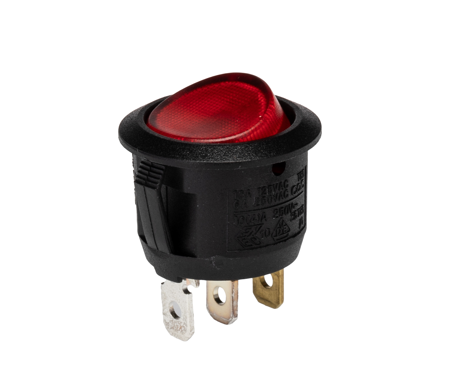This is Illuminated Single Pole Single Throw (SPST) On-Off Rocker Switch Panel Mount manufactured by Arcolectric (Bulgin) Ltd. The manufacturer part number is R13112BNAA. It is designed with an adorable round shape actuator . The actuator has an adorable red colour. Illumination Option yes. The product is available in panel mount configuration. It includes (blank) legend text . The rated contact current is 10a. The product r13, is a highly preferred choice for users. The contact is equipped with spst configuration. The panel has a 20.2mm cut-out diameter. In addition, its AC voltage rating is 250v . The panel cut out size includes 20.2 (dia.)mm. The terminal is a quick connect type. It provides on-off switch operation.