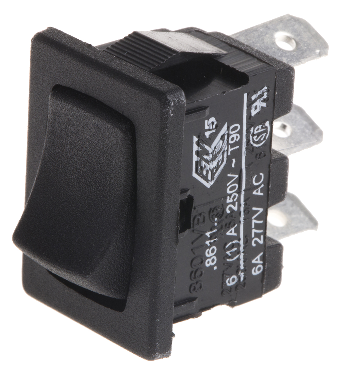 This is Single Pole Single Throw (SPST) (On)-On Rocker Switch Panel Mount manufactured by Arcolectric (Bulgin) Ltd. The manufacturer part number is H8611VBAAB. It is designed with an adorable rectangular shape actuator . Its panel cut out is 19.4mm in height . The actuator has an adorable black colour. Illumination Option no. The product is available in panel mount configuration. The rated contact current is 6 a. The contact is equipped with spst configuration. Its panel cut out is 12.9mm wide . In addition, its AC voltage rating is 250v . The panel cut out size includes 19.4 x 12.9mm. The terminal is a quick connect type. It provides (on)-on switch operation.