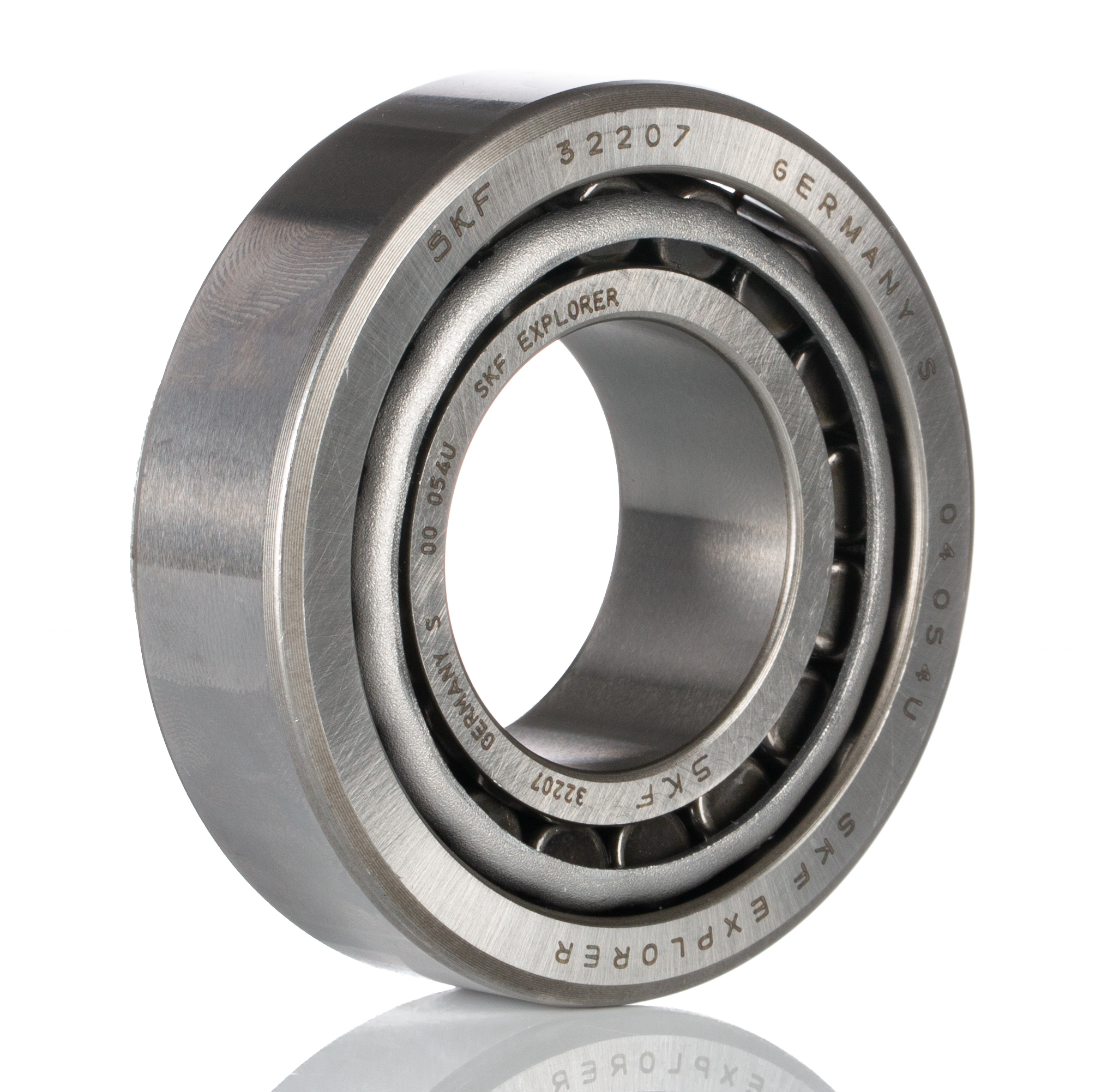 This is 35mm Taper Roller Bearing 72mm O.D manufactured by SKF. The manufacturer part number is 32207. Moreover, it has about 9500rpm speed limiting . It comes in 1 of rows. roller bearing is a versatile product designed to provide user-defined applications. It has shielded end and is easy to use. Its roller is made of steel material . It has 82kn static load rating. Moreover, its inside diameter is 35 mm. The cage is designed from highly rugged pressed steel material. This has integrated with a taper, a bearing with long-lasting features. The integrated bore is a type of parallel. Moreover, it has a tapered type race . The product has 72 mm external diameter.