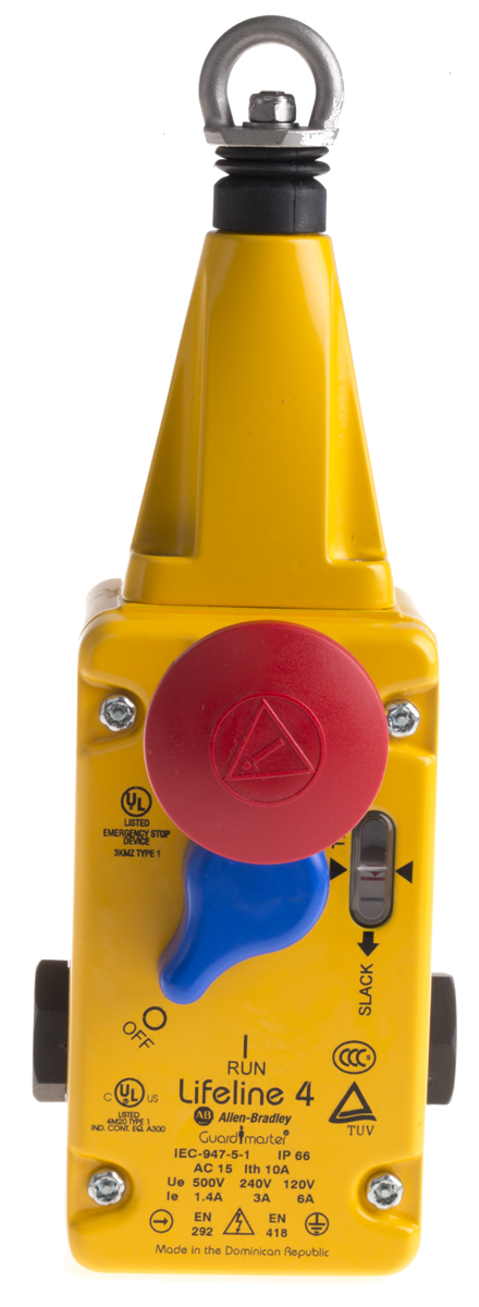 This is 440E Cable Switch with E-Stop Straight 125m 4NC manufactured by Allen Bradley Guardmaster. The manufacturer part number is 440E-L13147. It has 24v maximum DC voltage. A bespoke product carries 600v of maximum AC voltage. Whereas, its mounting orientation is straight . The given dimensions of the product include 209.5 x 62 x 85mm. It also carries 5a maximum current. It is IP rated with ip66. The product 440e, is a highly preferred choice for users. Whereas, the minimum operating temperature of the product is -25 °c, +80°c. Its accurate length is 209.5mm. The product also features robust die cast alloy housing material. Furthermore, the product is 62mm wide. The product comes in 85mm depth. The normal state configuration includes 4nc. It has a standard m20 conduit entry . It features lifeline 4 range. It has a maximum operating temperature of +80°c. It has equipped with 4p poles. Furthermore, the cable has a 125m of length.