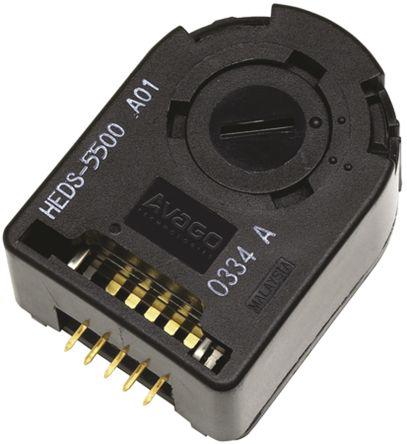 This is Incremental Encoder 30000rpm Round 4.5 → 5.5 V dc manufactured by Broadcom. The manufacturer part number is HEDS-5640#A06. The output signal is a kind of digital. It has about 500steps per resolution . It is created using incremental encoder technology . Moreover, it has 18.3mm of overall height. Additionally, the product has a round type shaft . Features 4.5 → 5.5 v dc supply voltage. Whereas, the minimum operating temperature of the product is -40°c. It has a maximum 30000rpm resolutions . Similarly, the product has 30mm of overall depth. It has a maximum operating temperature of +100°c. Features 500 cpr resolution. It has an overall width of 41.1mm. It exhibits a typical 100 khz switching frequency .
