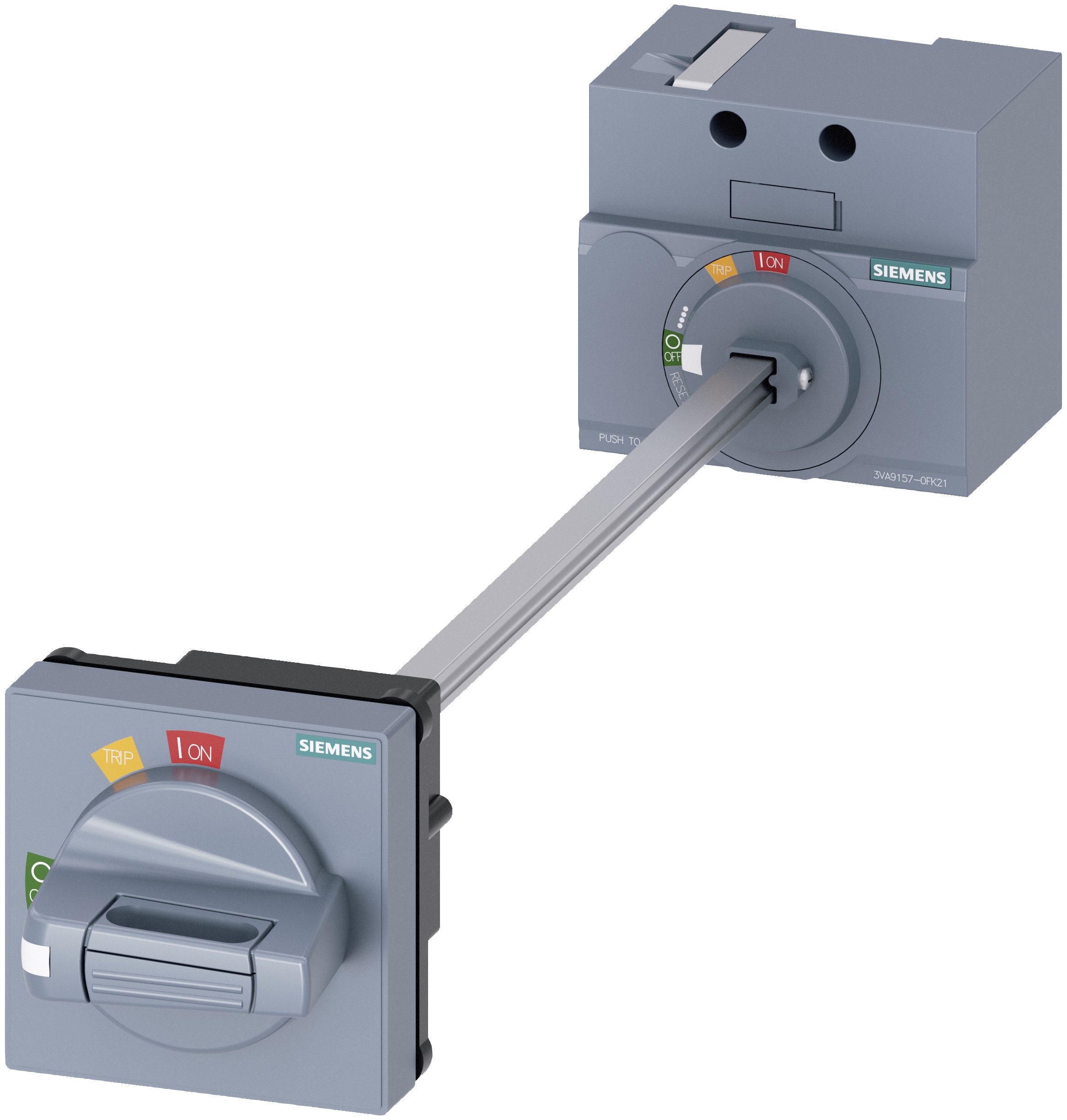 The Siemens 3VA9157-0FK21 is a door-mounted rotary operator designed to work seamlessly with Siemens 3VA1 100/160 circuit breakers. This component is an essential part of the circuit breaker system, providing a convenient and reliable method of manually opening and closing the breaker for maintenance, testing, or safety procedures.