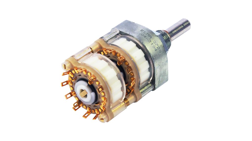 This is 30° Rotary Switch Wafer 6-Position manufactured by Elma. The manufacturer part number is 04-2264. The product includes 6 switch positions . Its diameter is 6mm. It has a throw angle 30°. The product contains 4 contacts. Moreover, the product has a nominal 42v dc voltage rating.