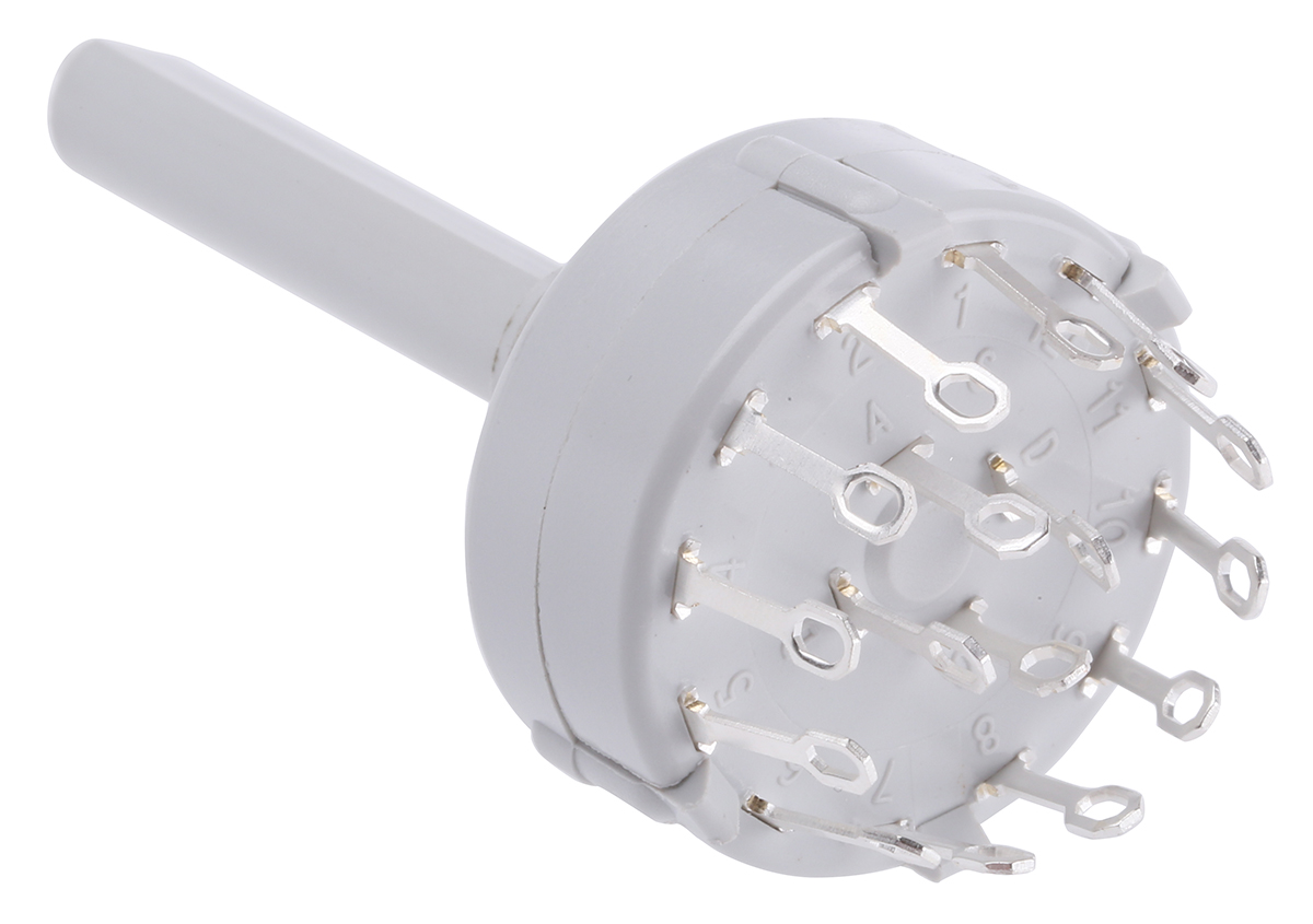 This is Rotary Switch 3 Way Solder Tab manufactured by Lorlin. The manufacturer part number is CK1037. The product includes 3 switch positions . The product is available in panel mount configuration. Moreover, the product has a nominal 250 v dc, 250v ac voltage rating. The rated contact current is 150 ma@ 250 v ac. It has a throw angle 90°. The contact is equipped with 4pst configuration. In addition, the height is 59.1mm. Furthermore, the product is 27.5mm wide. The product comes in 27.5mm depth. Whereas, the minimum operating temperature of the product is -30°c. The product contains 4 contacts. It has a maximum operating temperature of +85°c. The terminal is a solder tab type. The product is made from sturdy silver plated brass materials.