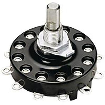 This is 8 positions 30° Rotary Switch 120 V ac/dc 1 A dc 15 A ac Shaft manufactured by Grayhill. The manufacturer part number is 19001-08UL.