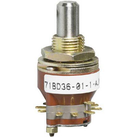 This is 2 → 10 positions 36° Rotary Switch 30 V dc 115 V ac 500 mA Shaft manufactured by Grayhill. The manufacturer part number is 71BD36-01-1-AJN.
