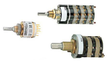 This is 12 positions Rotary Switch 120 V ac/dc 1 A 15 A Shaft manufactured by Grayhill. The manufacturer part number is 09MY231136.