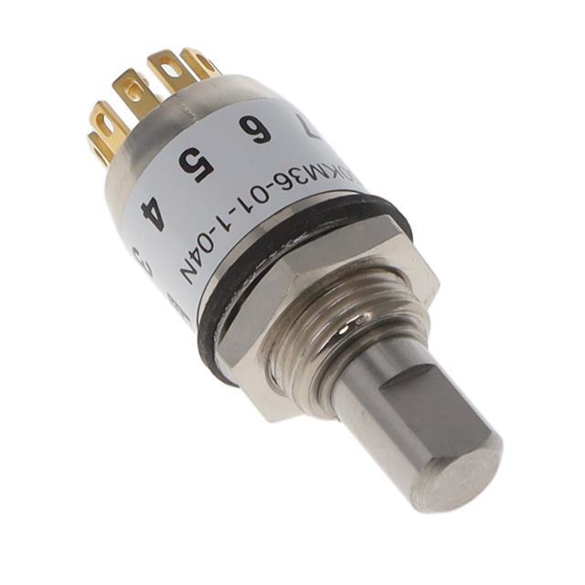 This is manufactured by Grayhill Inc.. The manufacturer part number is 50KM36-01-1-04N. It is assigned with possible HTSUS value of 8536.50.9020. The product is rohs3 compliant. Moreover, it has solder lug terminal style. 28 v of DC voltage rating. The product carries possible position value of 4. The actuator is a 9.53mm long. The product's number of decks equals 1. The product exhibits 115 v of AC voltage rating. In addition, it is reach unaffected. Typical depth of 18.77mm behind panel. Features fixed index stops. Whereas, there are 1 poles per deck. It is shipped in bulk package . It has a throw angle 36°. Furthermore, the product is galvanized with excellent gold contact finishing. Its typical moisture sensitivity level is not applicable. It has a long 14 weeks standard lead time. Additionally, the product's output is 150ma (ac), 200ma (dc). Contact Timing Options: non-shorting (bbm). The product is available in panel mount configuration. The product 50, is a highly preferred choice for users. The product is designated with the ear99 code number. The product carries flatted (3.17mm dia) actuator. Features sp4t circuit per deck. Moreover, it corresponds to 50km36, a base product number of the product.
