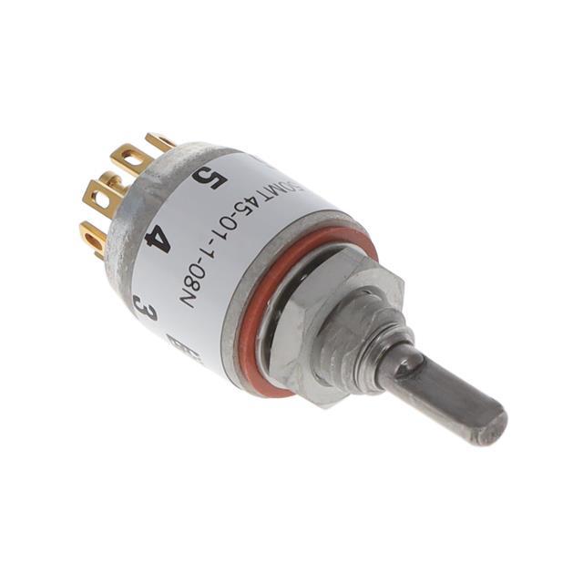 This is manufactured by Grayhill Inc.. The manufacturer part number is 50MT45-01-1-08N. It is assigned with possible HTSUS value of 8536.50.9020. The product is rohs3 compliant. Moreover, it has solder lug terminal style. 28 v of DC voltage rating. The product carries possible position value of 8. The actuator is a 9.53mm long. The product's number of decks equals 1. The product exhibits 115 v of AC voltage rating. In addition, it is reach unaffected. Typical depth of 18.77mm behind panel. Features continuous index stops. Whereas, there are 1 poles per deck. The grayhill inc.'s product offers user-desired applications. It has a throw angle 45°. Furthermore, the product is galvanized with excellent gold contact finishing. Its typical moisture sensitivity level is not applicable. It has a long 12 weeks standard lead time. Additionally, the product's output is 150ma (ac), 200ma (dc). Contact Timing Options: non-shorting (bbm). The splendid features of the product include process sealed. The product is available in panel mount configuration. The product 50, is a highly preferred choice for users. In addition, bulk is the available packaging type of the product. The product carries flatted (3.17mm dia) actuator. Features sp8t circuit per deck. Moreover, it corresponds to 50mt45, a base product number of the product. The product is designated with the ear99 code number.