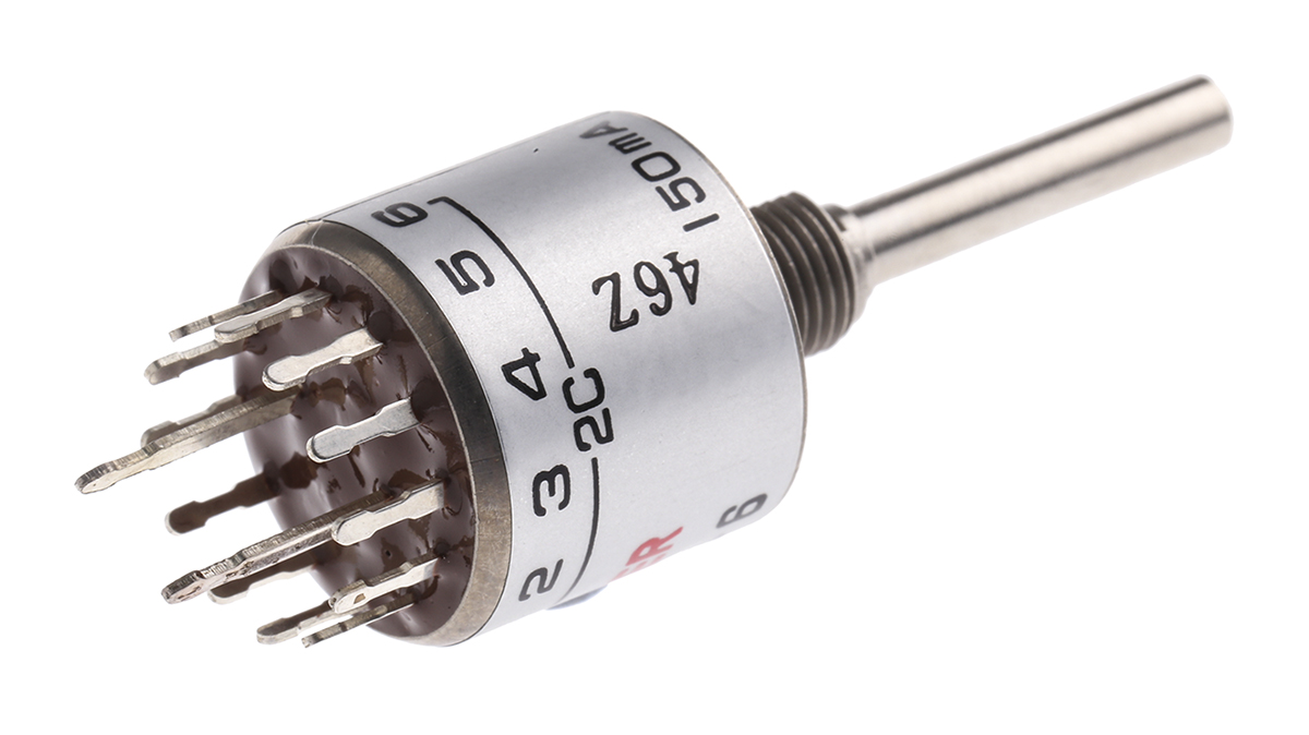 This is 6 Position DP6T Rotary Switch 150 mA @ 24 V dc Solder manufactured by KNITTER-SWITCH. The manufacturer part number is MR 2-6. The product includes 6 switch positions . Its diameter is 6.5mm. The given dimensions of the product include 6.5 x 40mm. The product is available in panel mount configuration. Moreover, the product has a nominal 125 v ac, 24v dc voltage rating. The rated contact current is 150 ma @ 24 v dc. The contact is equipped with dp6t configuration. In addition, the height is 40mm. Applications Information involves test and instrumentation switches. The casing is constructed from highly stable aluminium material. Whereas, the minimum operating temperature of the product is -45°c. The terminal is a solder type. The product contains 2 contacts. It has a maximum operating temperature of +110°c. The product is made from sturdy silver materials.