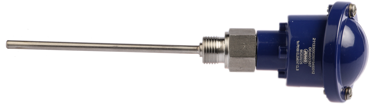 This is PT100 Sensor -50°C min +400°C max 150mm length x 6mm diameter manufactured by Jumo. The manufacturer part number is 902020/25-402-1001-1-6-150-104/395,. It has a/an m20 cable entry size . These sensors are sort of pt100. Additionally, it has a minimum -50°c sensed temperature . Its probe diameter is about 6mm . The length of the probe is 150mm. It includes 3 premium-quality wires . The product is designed with a connection head termination. It includes a standard g1/2 process connection . It senses +400°c maximum temperature . It responds within 50 s. The probe is manufactured from robust stainless steel materials. It provides high accuracy of class b.