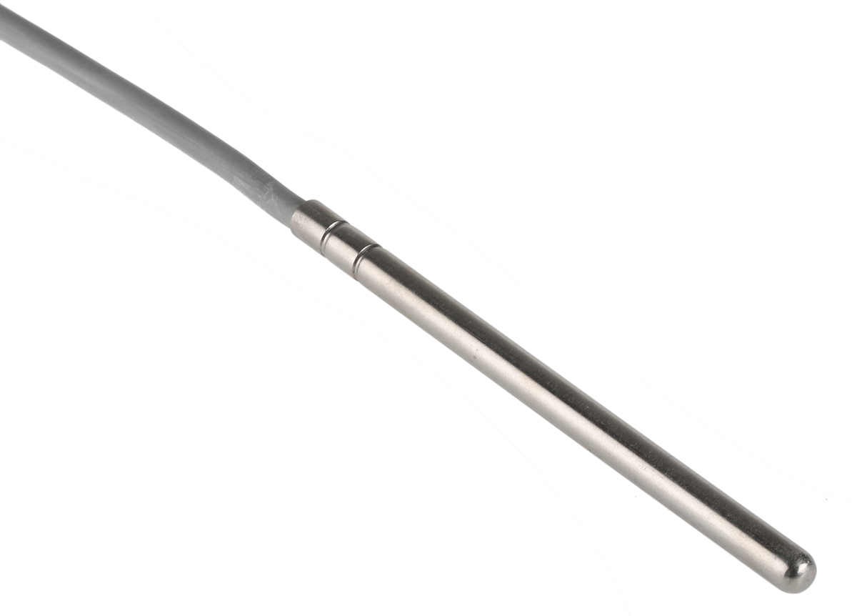 This is PT100 Temperature Probe max. +250 °C manufactured by Carel. The manufacturer part number is PT100000A1. These sensors are sort of pt100. Its probe diameter is about 6mm . The length of the probe is 100mm. It senses +250°c maximum temperature . Furthermore, the cable has a 3m of length.