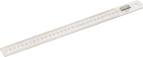 This is 500mm Steel Metric Ruler manufactured by SAM. The manufacturer part number is 781-5R. It is available in metric package. A quality product with a nice satin finish. It has a folding feature no . The product is made from highly stable and reliable steel. Furthermore, the product is 300mm wide. Its accurate length is 500mm. It is flexible no .
