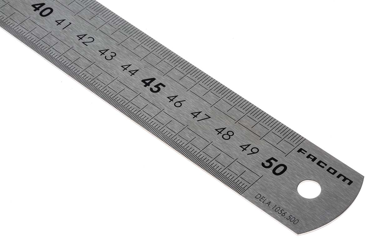 This is 500mm Stainless Steel Metric Ruler manufactured by Facom. The manufacturer part number is dela.1056.500. It is available in metric package. It has a folding feature no . The product is made from highly stable and reliable stainless steel. Furthermore, the product is 30mm wide. Its accurate length is 500mm. It is flexible no .