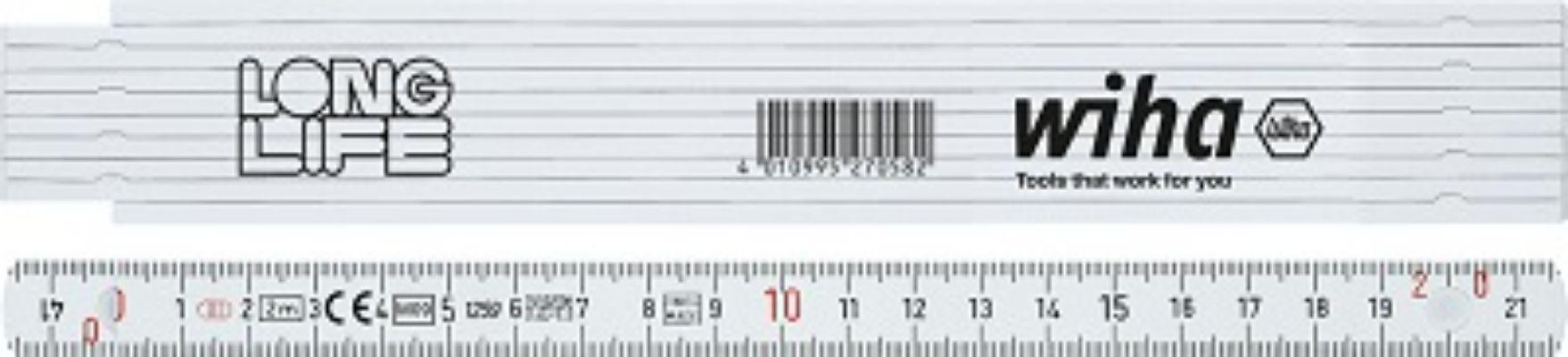 This is Tools 2m Glass Fiber Reinforced Polyamide Imperial Folding Ruler manufactured by Wiha. The manufacturer part number is 27058. It is available in imperial package. It has a folding feature yes . The product is made from highly stable and reliable glass fiber reinforced polyamide. Furthermore, the product is 15mm wide. Its accurate length is 2m. It is flexible no .