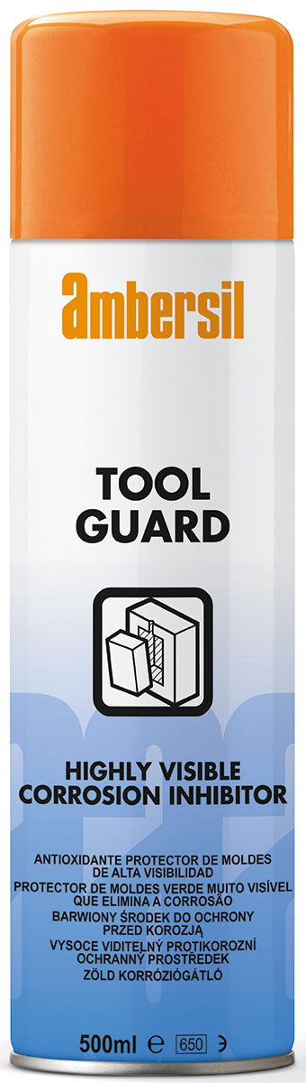 This is Green 500 ml aerosol Rust & Corrosion Inhibitor manufactured by Ambersil. The manufacturer part number is 31972-AB. It is assigned with a trade name of tool guard. It has a decent green colour. Applications Information involves metal component, all injection mould tool, blow mould tool, extrusion dies. The package is a sort of aerosol. Its package size is approximately 500 ml . rust & corrosion inhibitor is a versatile product designed to provide user-defined applications. It has a maximum operating temperature of 50°c.