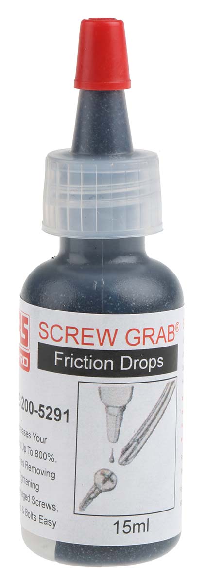 This is Screw Grab Grey Thread lock 15 mm manufactured by RS PRO. The manufacturer part number is 200-5291. It has a decent grey colour. The package is a sort of bottle. Its package size is approximately 15 ml .