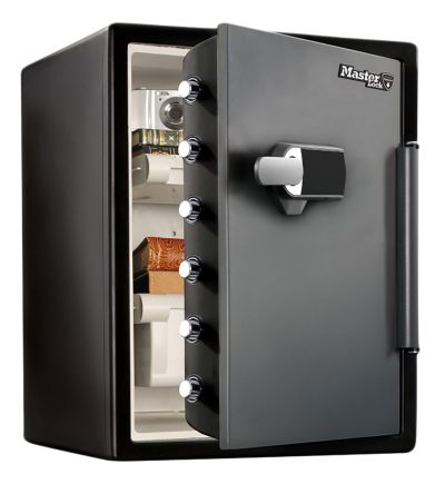 This is 56.5L Cash Safe manufactured by Master Lock. The manufacturer part number is LFW205TWC. The module has the capacity of 56.5l. The typical product's weight is 56.6kg. It has a decent black, grey colour. In addition, the height is 605 mm. Furthermore, the product is 490mm wide. The product comes in 472 mm depth. Additionally, it has a/an combination padlock type lock . In addition, the product has fire protection time of 60min . Additionally, it has a fireproof quality yes . It comes in office configuration.