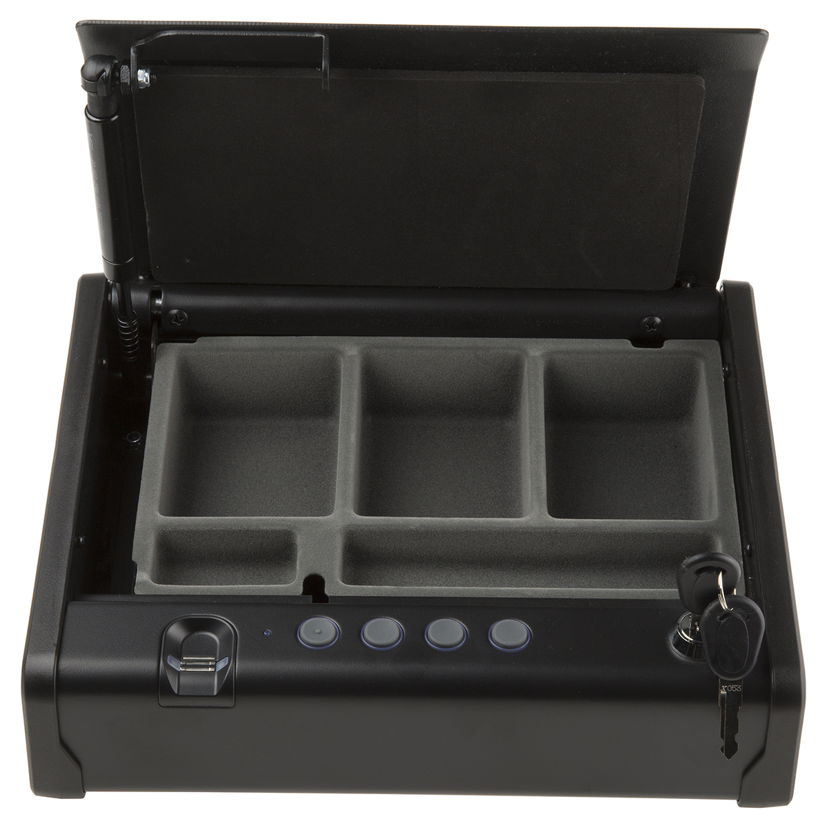 This is 2.34L Cash Safe Fingerprint Safe manufactured by Master Lock. The manufacturer part number is MLD08EB. The module has the capacity of 2.34l. The typical product's weight is 5.4kg. It has a decent black colour. In addition, the height is 81 mm. Furthermore, the product is 307mm wide. The product comes in 251 mm depth. Additionally, it has a/an fingerprint type lock . It comes in hotel configuration.