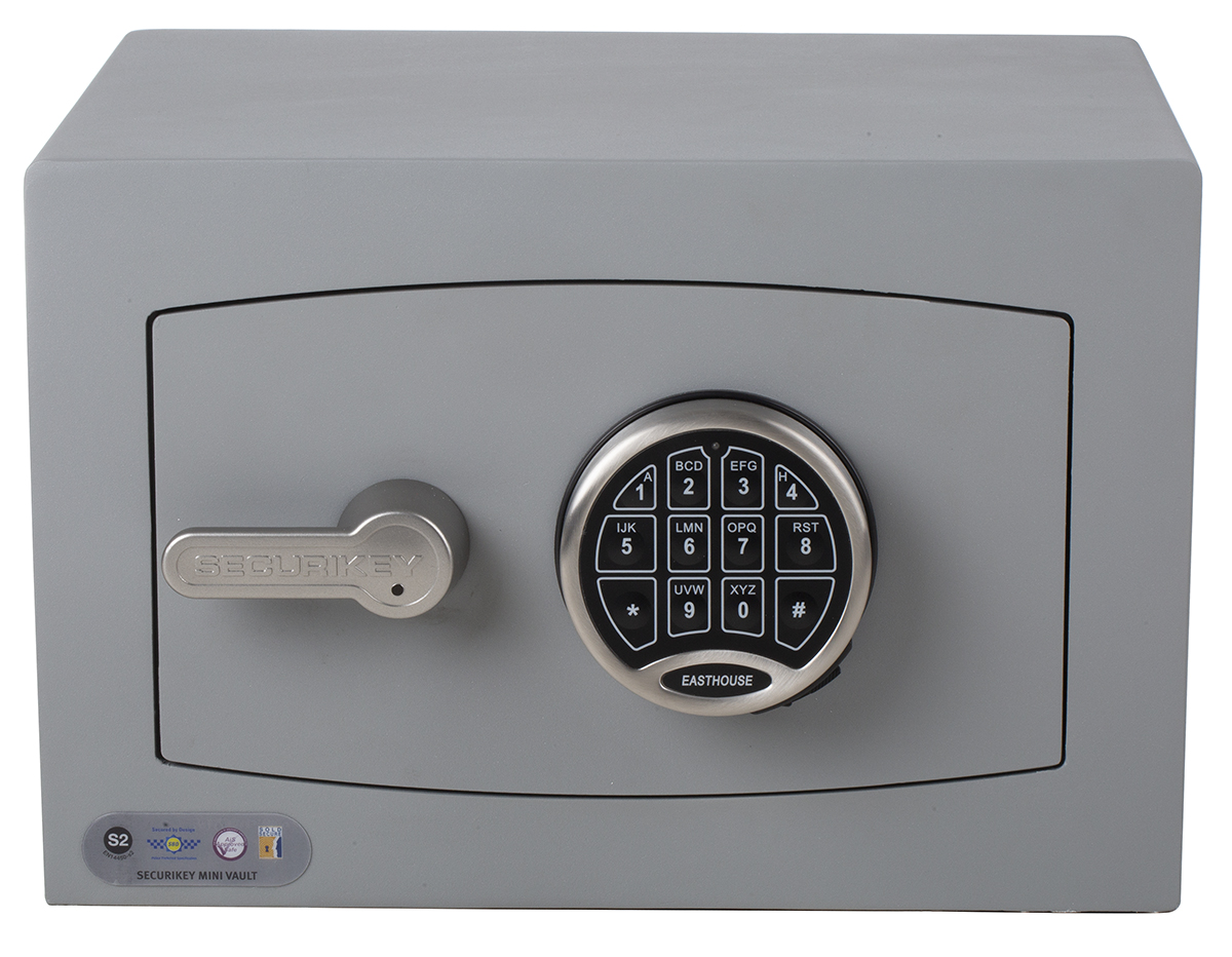 This is 18L Cash Safe manufactured by Securikey. The manufacturer part number is SFMV0ZE. The module has the capacity of 18l. The typical product's weight is 22kg. It has a decent grey colour. In addition, the height is 250 mm. Furthermore, the product is 374mm wide. The product comes in 274 mm depth. Additionally, it has a/an electronic type lock . It comes in hotel configuration.