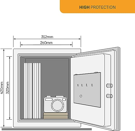 This is 25.3L Electronic Floor Electronic Office Fire Safe Locker Box Fire Safe manufactured by Yale1. The manufacturer part number is YFM-420-FG2. The module has the capacity of 25.3l. The typical product's weight is 26kg. It has a decent black colour. In addition, the height is 420mm. Furthermore, the product is 352 mm wide. The product comes in 433mm depth. Additionally, it has a/an electronic type lock . In addition, the product has fire protection time of 1h . fire safe is a versatile product designed to provide user-defined applications. Its sub type is electronic office fire safe locker box . It has a floor type mount .