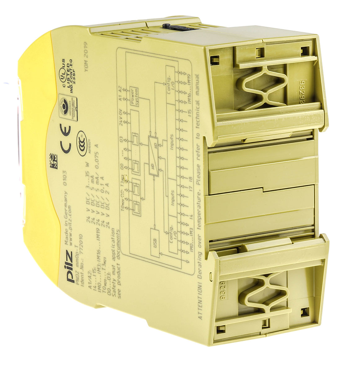 This is PNOZ mm0p-T manufactured by Pilz. The manufacturer part number is 772010. It provides robust safety and is complied with 4 safety category. It features a remarkable led display. The given dimensions of the product include 98 x 45 x 120 mm. Moreover, it has 4 safety outputs . It is IP rated with ip20, ip54. The rated contact current is 5 ma. The product has expansion available yes . 24 is the I/O value of the product. Its accurate length is 98mm. Furthermore, the product is 45mm wide. The product comes in 120mm depth. Features 24 v dc supply voltage. It features pnoz mm0p-t range. The integrated contact has 24 v dc of voltage rating. The terminal is a cage clamp, screw type. Including 20 safety inputs . Additionally, it has sil 3 SIL .