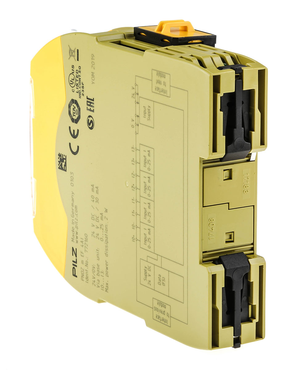 This is PNOZ m EF AI manufactured by Pilz. The manufacturer part number is 772160. It provides robust safety and is complied with 4 safety category. The given dimensions of the product include 98 x 22.5 x 120 mm. It is IP rated with ip20, ip54. Including 4 safety inputs . The product has expansion available yes . Its accurate length is 98mm. Furthermore, the product is 22.5mm wide. The product comes in 120mm depth. Features 24 v dc supply voltage. It features pnoz m ef range. The terminal is a cage clamp, screw type. Additionally, it has sil 3 SIL .