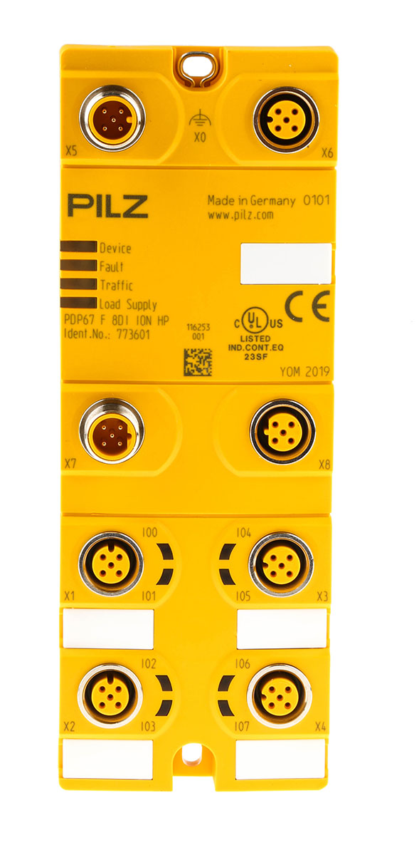 This is PDP67 F 8DI ION HP manufactured by Pilz. The manufacturer part number is 773601. It provides robust safety and is complied with 4 safety category. It features a remarkable led display. The given dimensions of the product include 60 x 29.6 x 162 mm. It is IP rated with ip67. Including 8 safety inputs . Its accurate length is 60mm. Furthermore, the product is 29.6mm wide. The product comes in 162mm depth. Features 24 v dc supply voltage. It features pdp67 f range. The terminal is a screw type. Moreover, it has 8 safety outputs . Additionally, it has sil 2, sil 3 SIL .