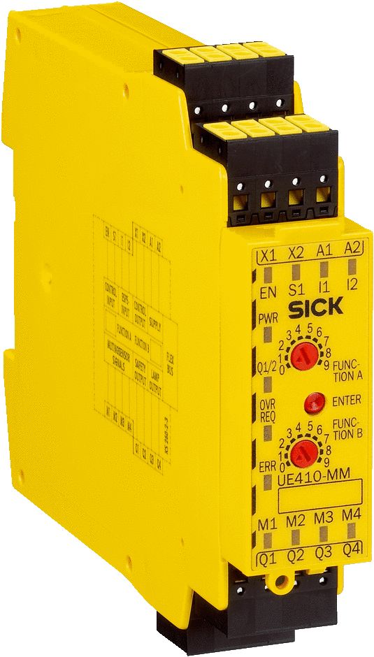 This is UE410 Series Safety Controller 2 Safety Inputs 2 Safety Outputs 24 V dc manufactured by SICK. The manufacturer part number is UE410-MM4. It features a remarkable led display. The given dimensions of the product include 22.5 x 96.5 x 120.8 mm. Moreover, it has 2 safety outputs . It is IP rated with ip20, ip40. Including 2 safety inputs . The product ue410, is a highly preferred choice for users. Its accurate length is 96.5mm. Furthermore, the product is 22.5mm wide. The product comes in 120.8mm depth. Features 24 v dc supply voltage. The terminal is a plug-in spring terminal type. Additionally, it has sil 3 SIL .
