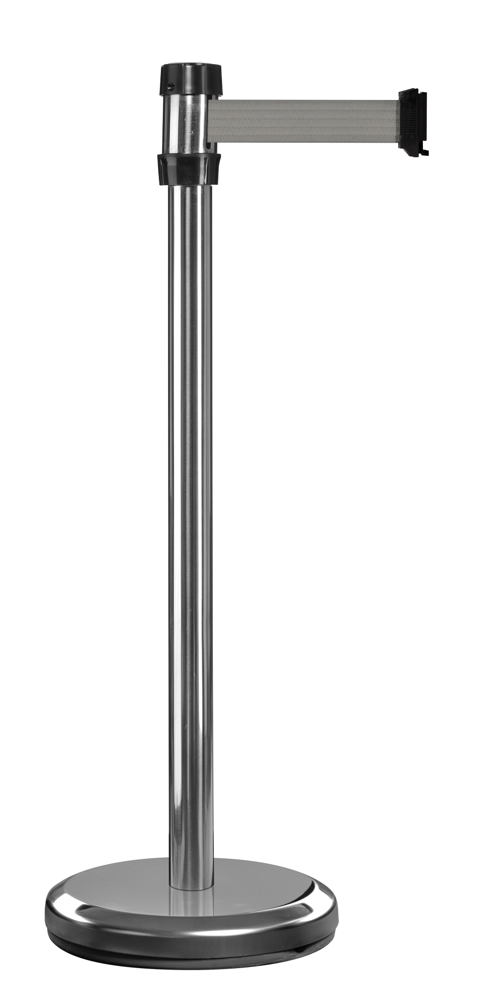 This is Grey Aluminium Barrier Post 2m Grey Tape manufactured by Viso. The manufacturer part number is RS2SRGR. It has a standard 330mm barrier base diameter . Its diameter is 51mm. A quality product with a nice chrome finish. It is a barrier post barrier. It has a decent grey colour. The product is made from highly stable and reliable aluminium. In addition, the height is 1 m. It has a grey colour tape . Its tape is 2m in length . It has a tape material of polyester .