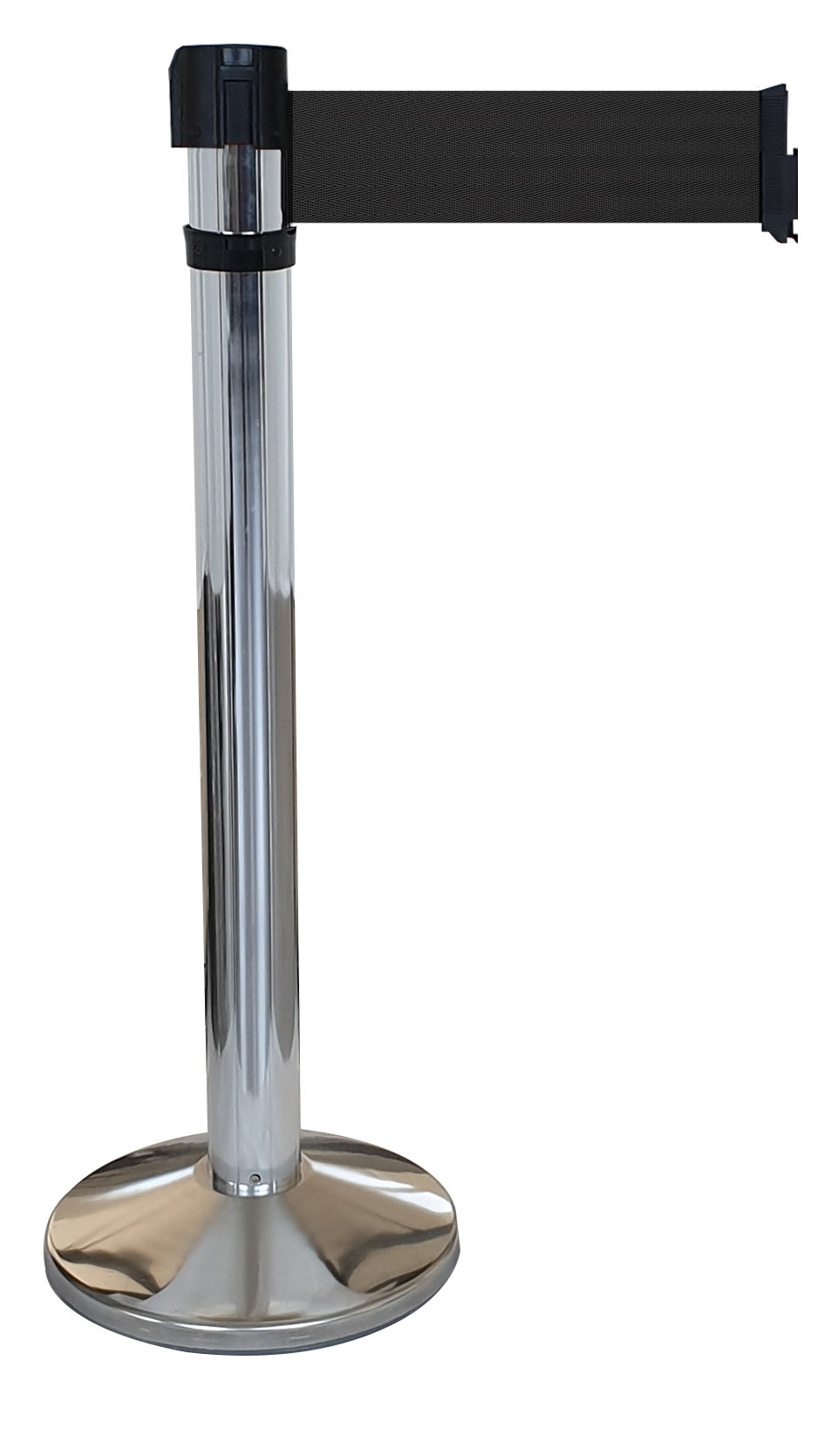 This is Grey Aluminium Barrier Post 4m Black Tape manufactured by Viso. The manufacturer part number is RS410SRBK. It has a standard 360mm barrier base diameter . A quality product with a nice chrome finish. It is a barrier post barrier. It has a decent grey colour. The product is made from highly stable and reliable aluminium. Its tape is 4m in length . It has a black colour tape . In addition, the height is 104 cm. It has a tape material of polyester .