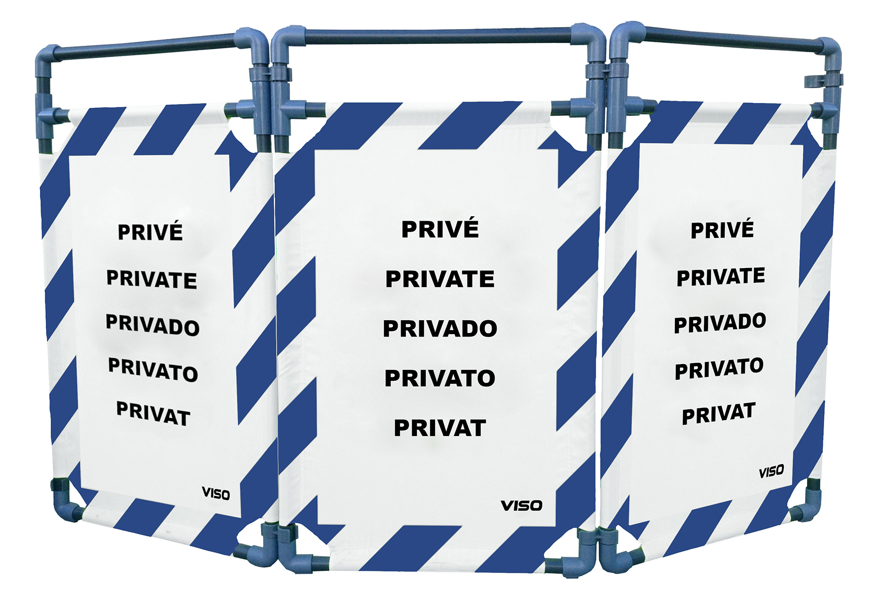 This is Blue White PVC Folding Barrier manufactured by Viso. The manufacturer part number is TRAVO100PRIV. It is a folding barrier barrier. It has a decent blue, white colour. The product is made from highly stable and reliable pvc. Its barrier is made from polyester material . Its accurate length is 1,70m. In addition, the height is 1 m. Additionally, it has a Barrier Text private Its barrier is of blue, white colour .