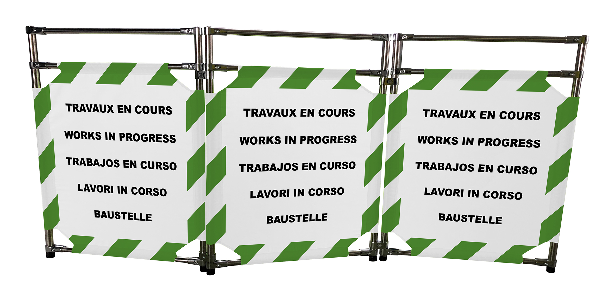 This is Green/White Stainless Steel Folding Barrier manufactured by Viso. The manufacturer part number is TRAVO128JARD. It is a folding barrier barrier. It has a decent green/white colour. The product is made from highly stable and reliable stainless steel. Its barrier is made from polyester material . Its accurate length is 1,70m. In addition, the height is 1 m. Additionally, it has a Barrier Text work in progress Its barrier is of green-white colour .