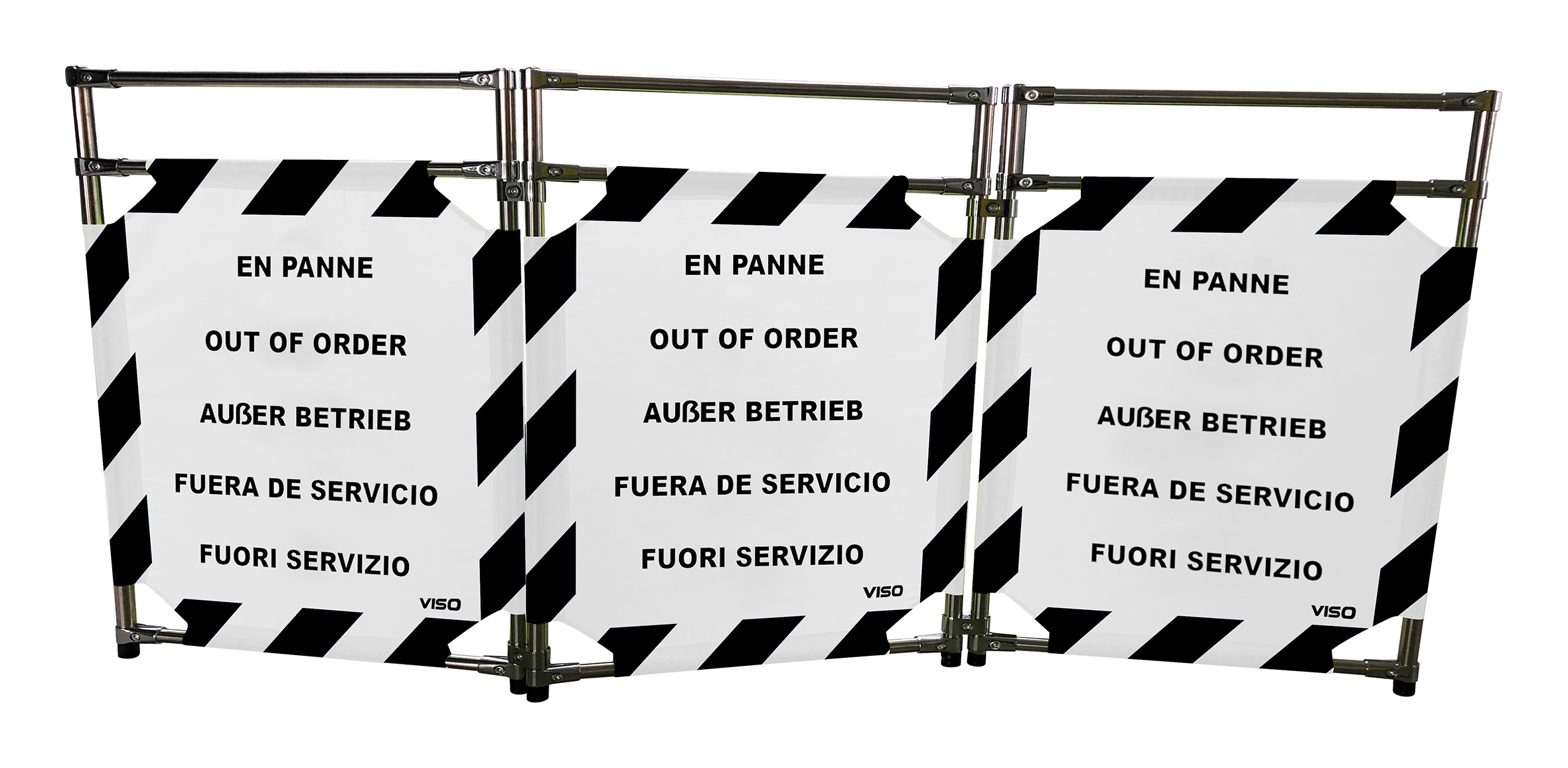 This is Black/White Stainless Steel Folding Barrier manufactured by Viso. The manufacturer part number is TRAVO128PANE. It is a folding barrier barrier. It has a decent black/white colour. The product is made from highly stable and reliable stainless steel. Its barrier is made from polyester material . Its accurate length is 1,70m. In addition, the height is 1 m. Additionally, it has a Barrier Text out of order Its barrier is of white/black colour .